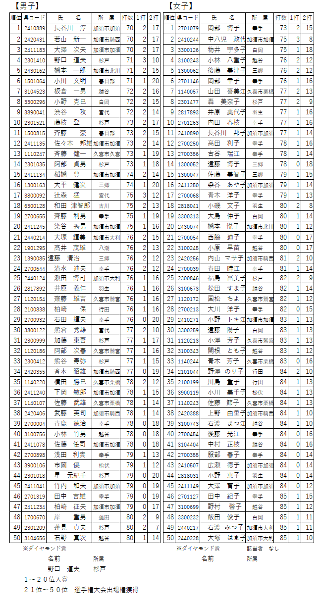 女性優勝 女性1〜10位 女性11〜20位 男性優勝 男性1〜10位 男性11〜20位